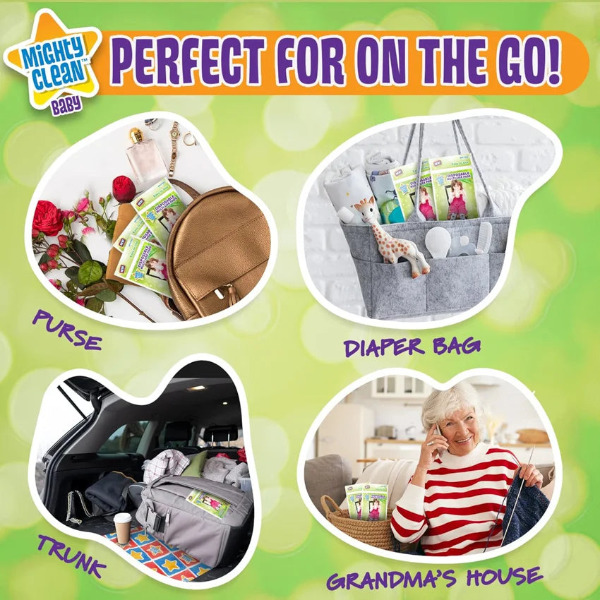 On-the-Go Ready: With two slim packs, you can conveniently stash them in your purse, diaper bag, trunk, or Grandma's house. Always be prepared for any mess, no matter where you are!